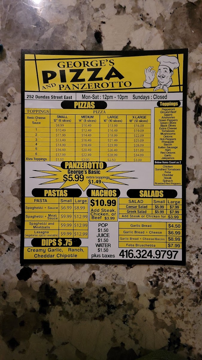 Welcome to George's Pizza and Panzerotto, a hidden gem located at 252 Dundas St E, Toronto, ON M5A 1Z8. This delightful eatery has become a favorite for locals and visitors alike, drawing in pizza lovers with its unparalleled Montreal-style offerings and warm community vibe.